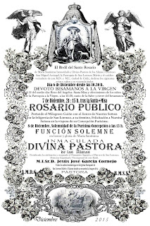 El 8 de diciembre, Solemnidad de la Purísima Concepción, a las 13:00 horas, Función Solemne en honor y gloria de María Santísima Inmaculada y Divina Pastora de las Almas. Presidirá la celebración y ocupará el Panegírico Sagrado, el Párroco de San Lorenzo, Protector Espiritual y Vicemayoral de este Redil el M.I.Sr.D. Jesús José García Cornejo.